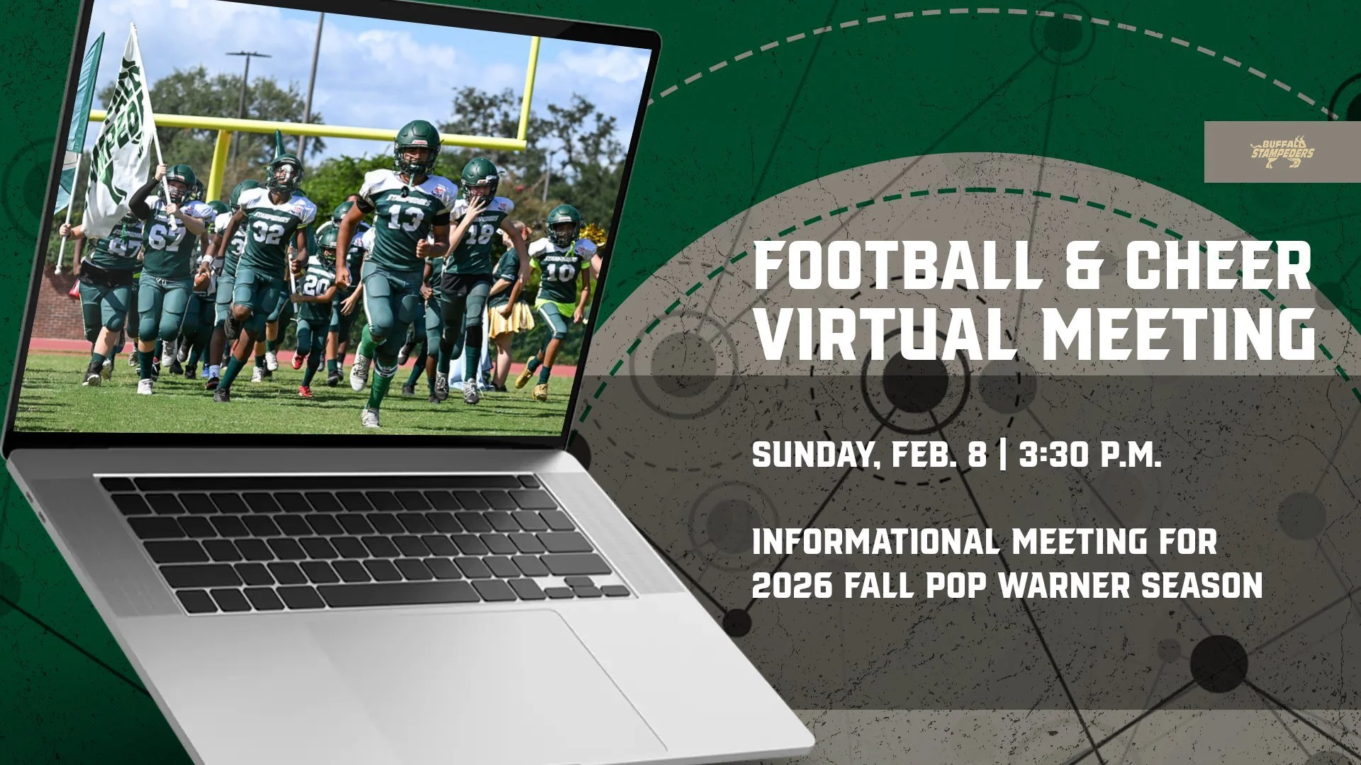 The Buffalo Stampeders Youth Football Program is proud to host a virtual informational meeting to introduce the 2026 Pop Warner season.